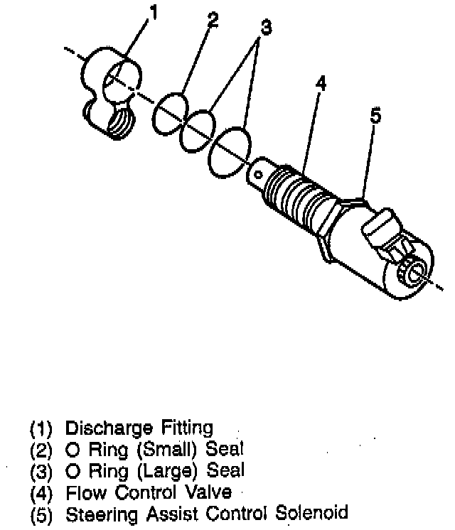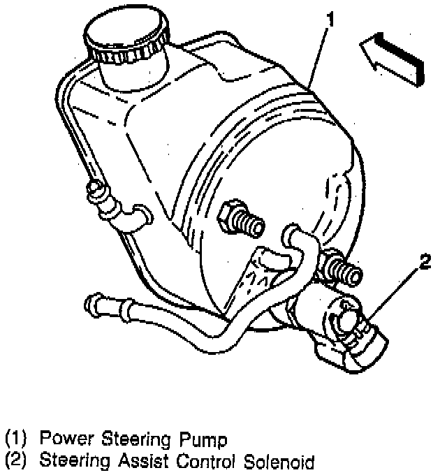 The Steering Assist Control Solenoid, mounted on the power steering pump, contains a solenoid operated valve. Discharged fluid passes through an orifice in the solenoid. As the vehicle speed increases, the EVO/Passlock Module increases the PWM signal to the Steering Assist Control Solenoid. Higher current gradually moves the valve further and further into the orifice. This action restricts the passage of fluid flow through the orifice, reducing power assist in the steering gear.