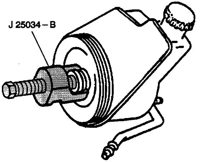 2. Install J 25034-B to the outer lip of the steering pump and remove the pulley.