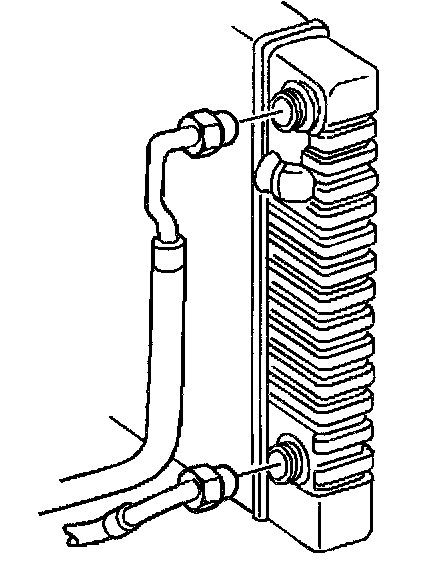 20. Install the flair nuts securing the oil cooler lines to the radiator.