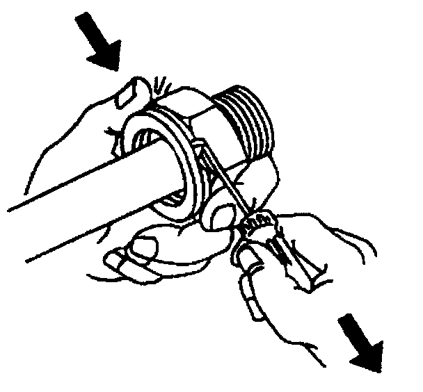 12. Pull back sharply on the cooler line in order to ensure that the cooler line is fastened into the quick connect fitting.