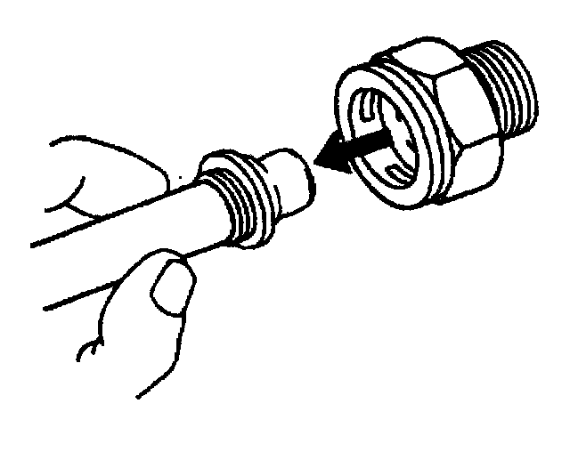 11. Do not use the plastic cap on the cooler line in order to install the cooler line into the fitting.