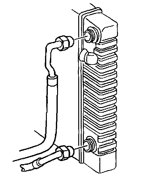 21. Install the flair nuts securing the oil cooler lines to the radiator.