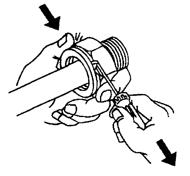 13. Pull back sharply on the cooler line in order to ensure that the cooler line is fastened into the quick connect fitting.