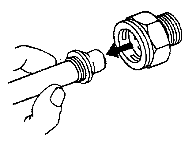 12. Do not use the plastic cap on the cooler line in order to install the cooler line into the fitting.