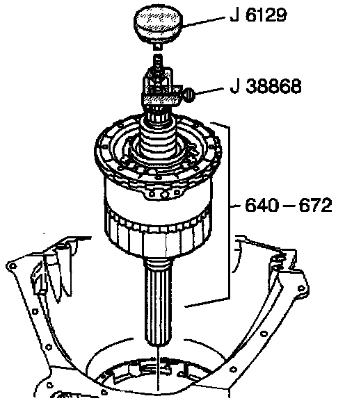 1. Attach the J 38868 and J 6129 onto the main shaft (662).