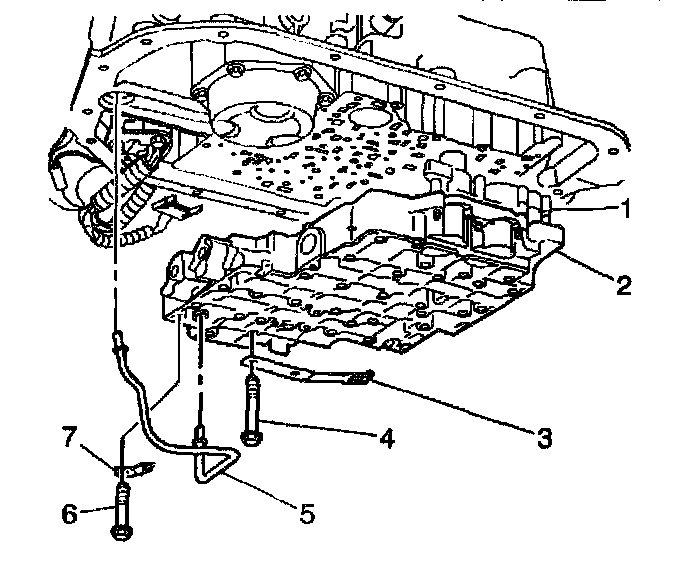 2. Remove the Transmission Fluid Pressure (TFP) manual valve position switch bolts and the TFP valve position switch).