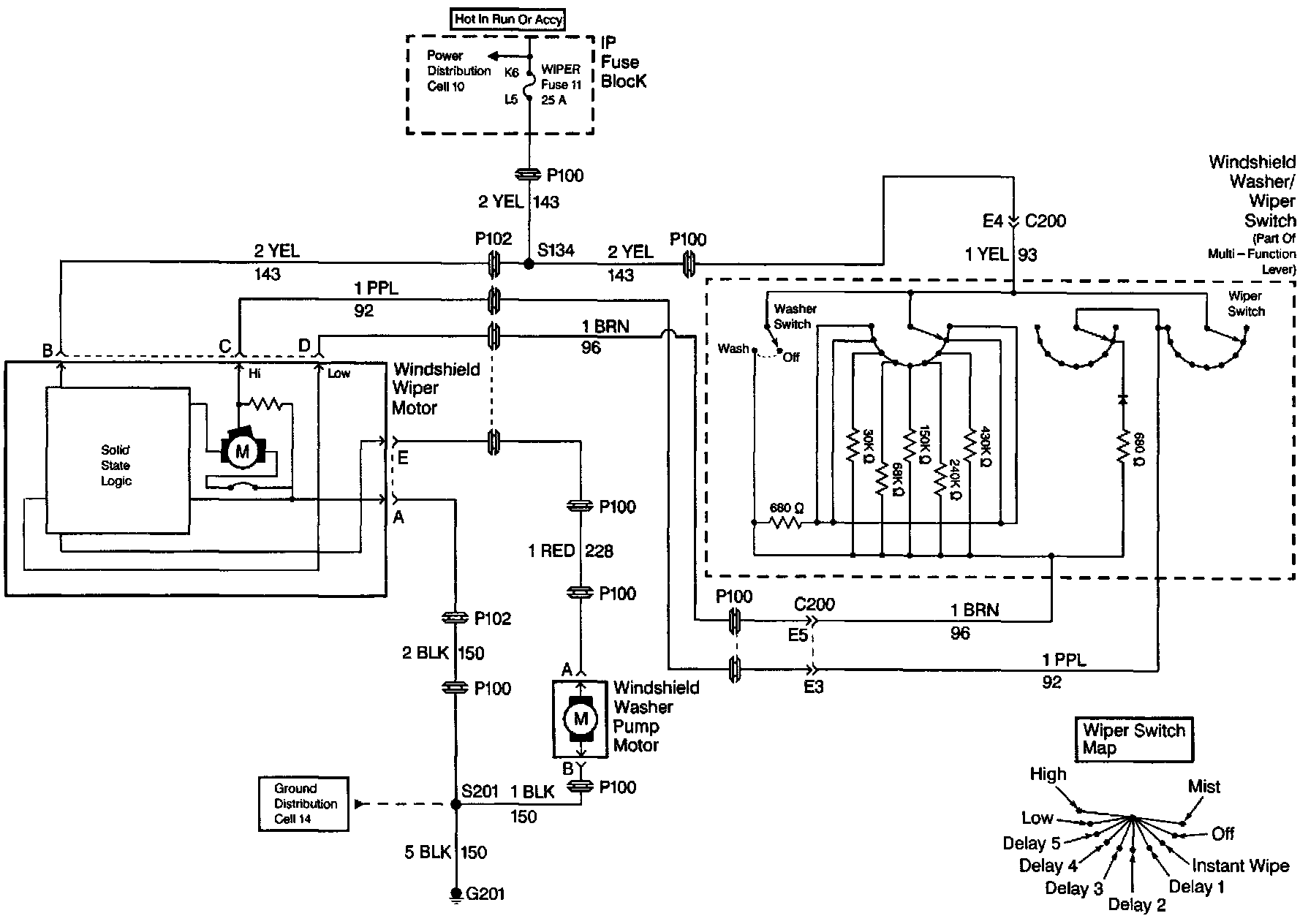 Wiper/Washer System (Pulse) Schematics: