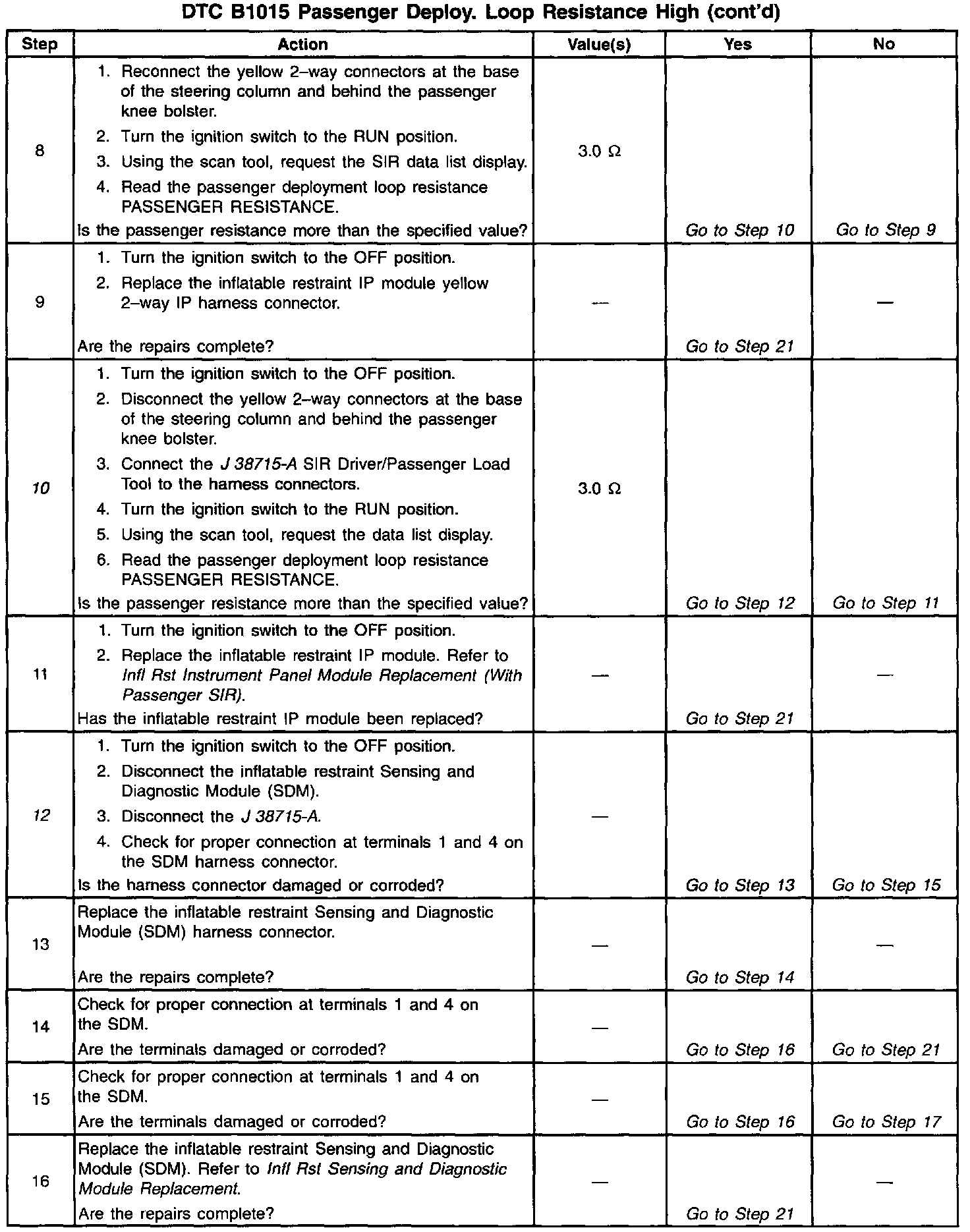 ^ The passenger deployment loop resistance is more than 3.0 ohms.