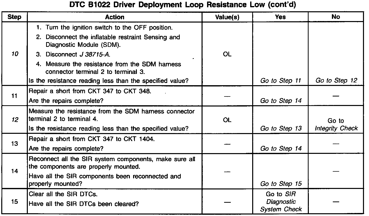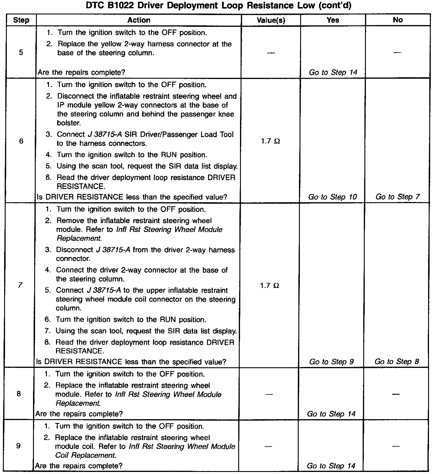 7. This test determines whether the malfunction is due to the inflatable restraint steering wheel module or the module coil.