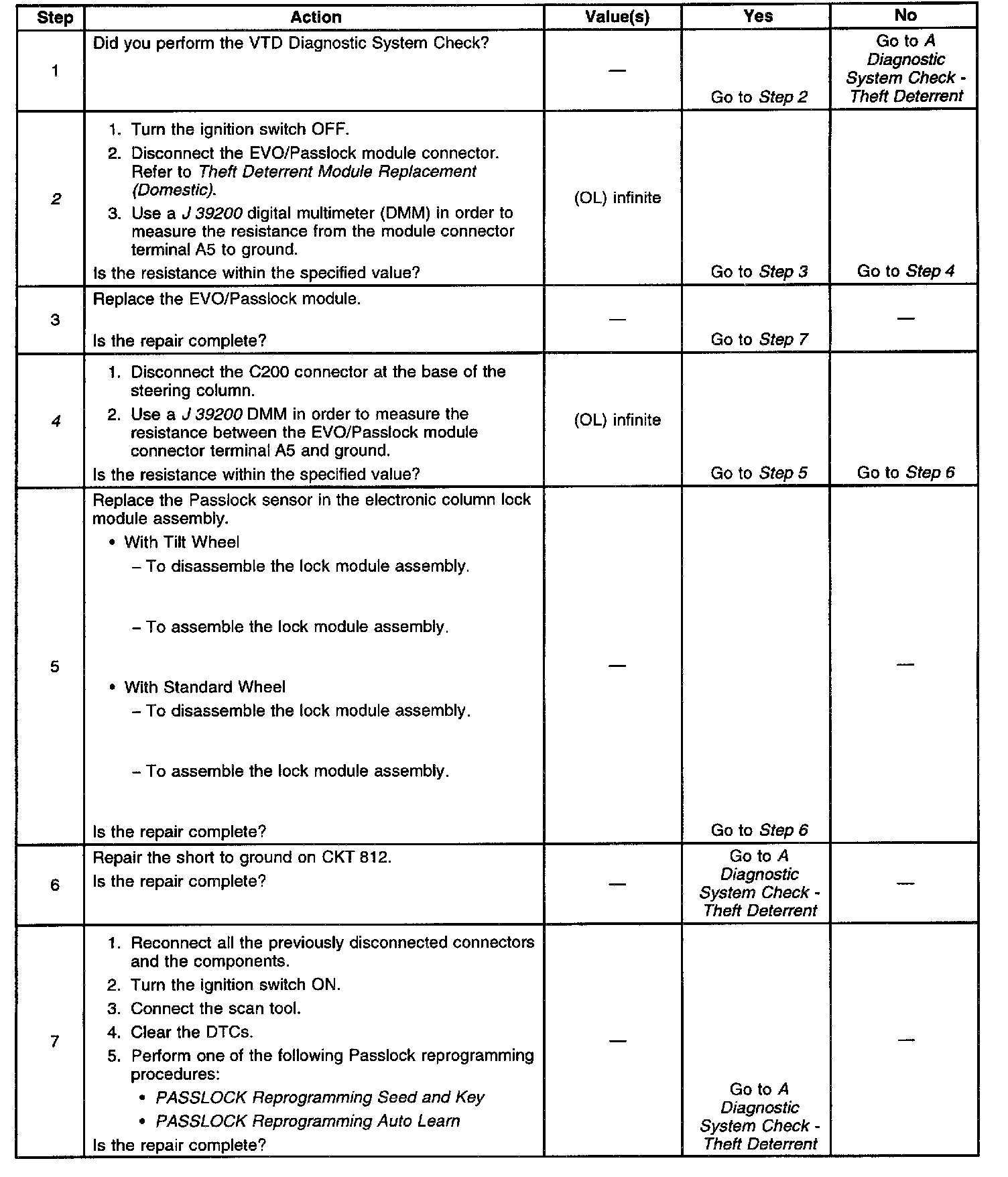 ^ If the vehicle is running when the fault occurs, the EVO/Passlock module will be in the fail enabled mode allowing the vehicle to start and run. The security telltale will be ON.