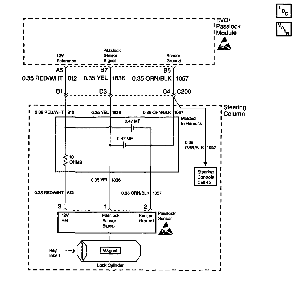 The EVO/Passlock module supplies power to the Passlock sensor on CKT 812.