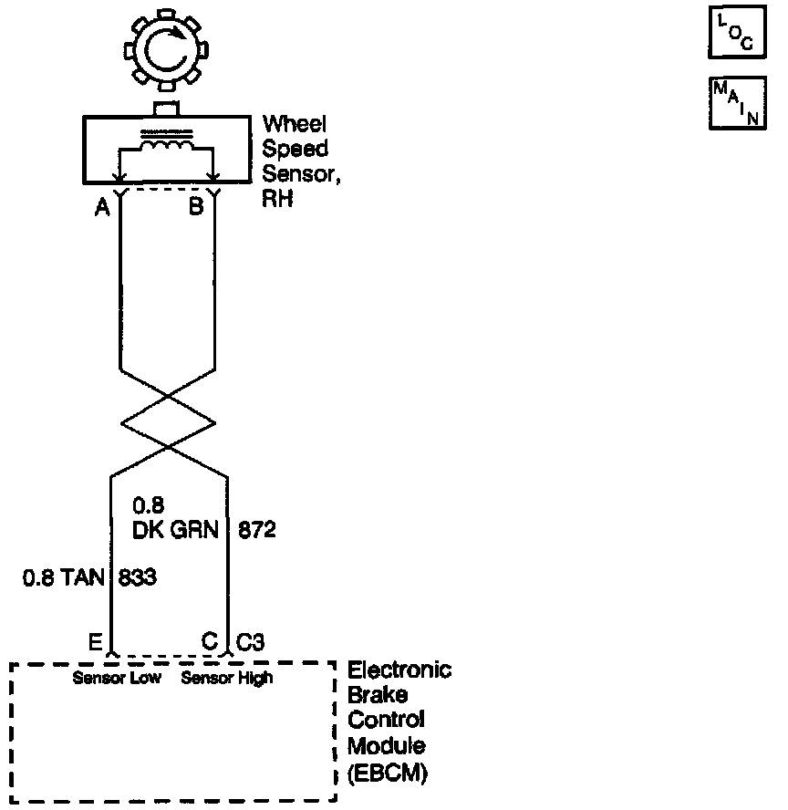 The wheel speed sensor coil emits an electromagnetic field. A toothed ring on the wheel passes by the wheel speed sensor and disrupts this electromagnetic field. The disruption in the field causes the wheel speed sensor to produce a sinusoidal (AC) voltage signal. The frequency and amplitude of the sinusoidal (AC) voltage signal are proportional to the speed of the wheel. The amplitude of the wheel speed signal is also directly related to the distance between the wheel speed sensor coil and the toothed ring. This distance is referred to as the air gap.