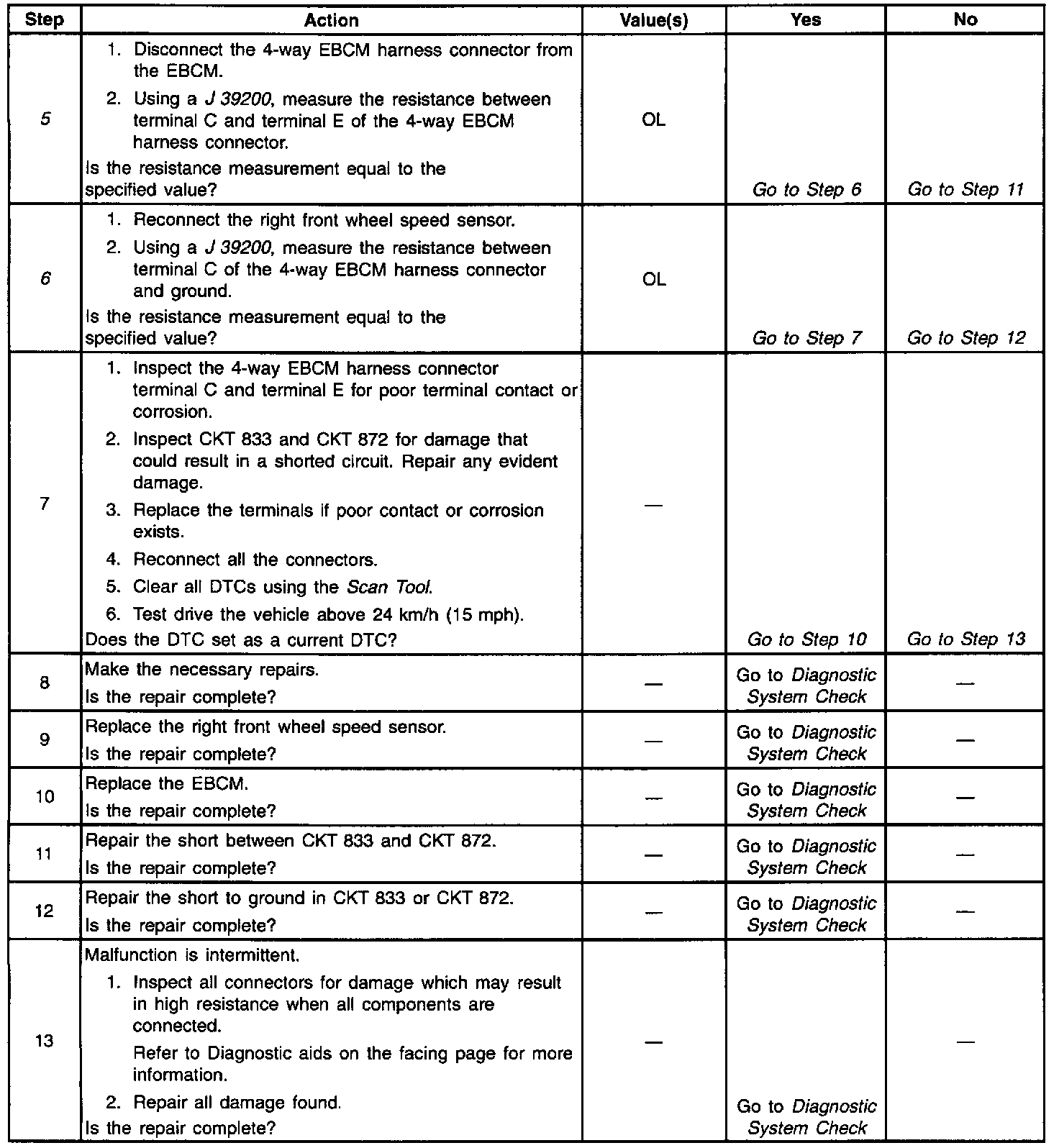 6. This step checks for a short to ground in the right front wheel speed sensor circuits.
