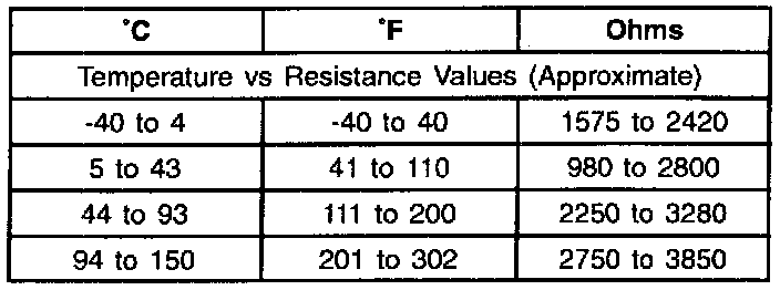 Resistance of the wheel speed sensor will increase with an increase in sensor temperature. Refer to the table for temperature/resistance values.