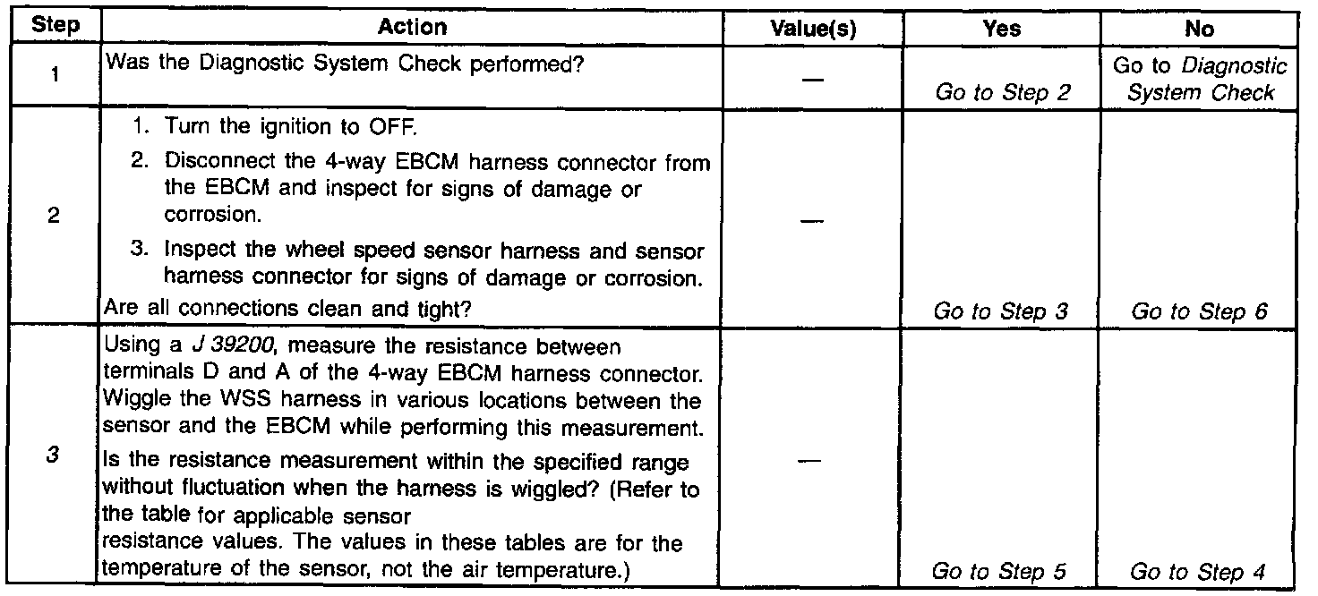 3. This step uses the wheel speed sensor resistance check to help isolate an intermittent connection.