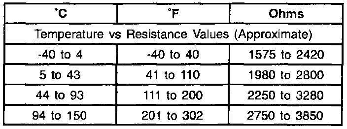 Resistance of the wheel speed sensor will increase with an increase in sensor temperature. Refer to the table for temperature/resistance values.