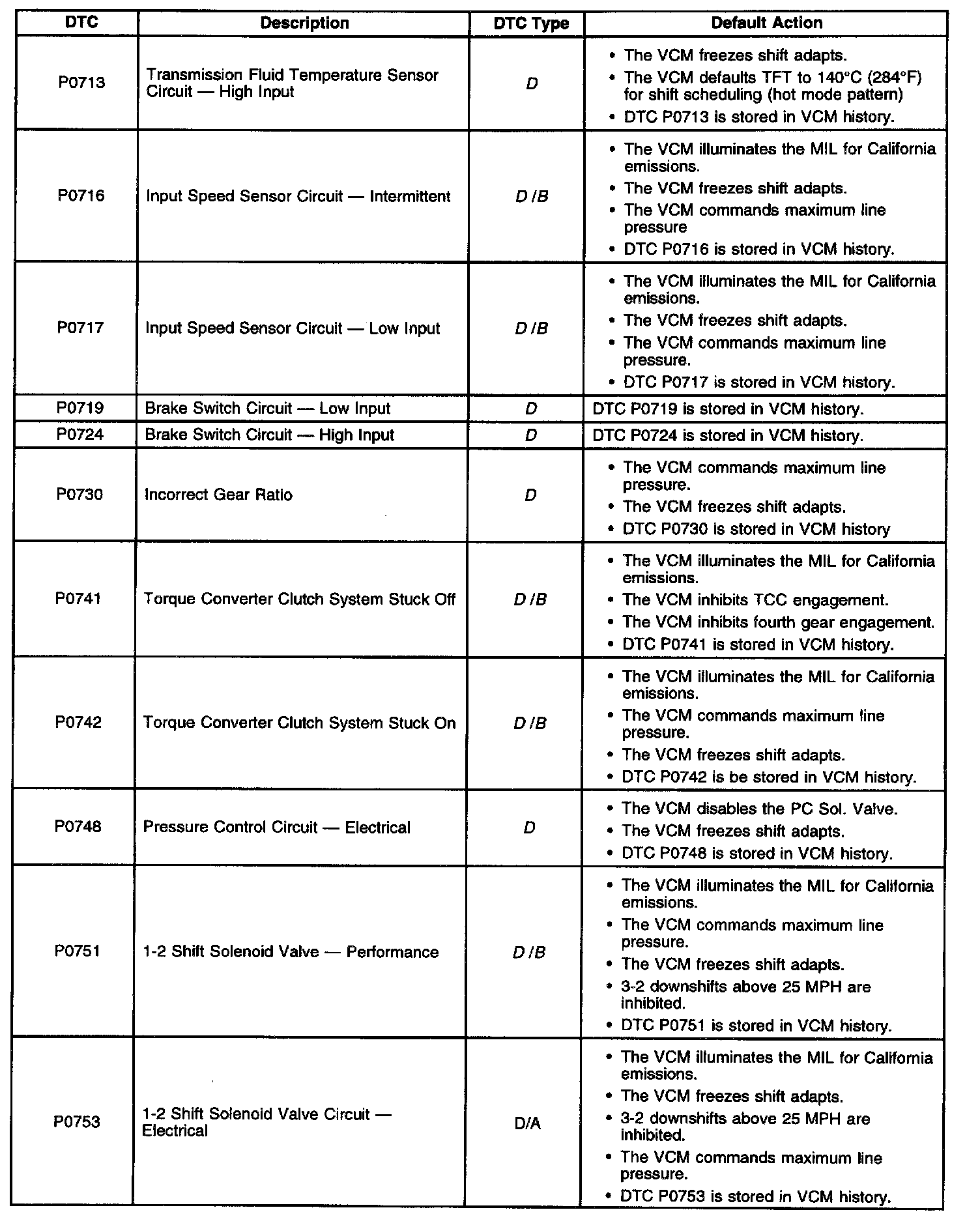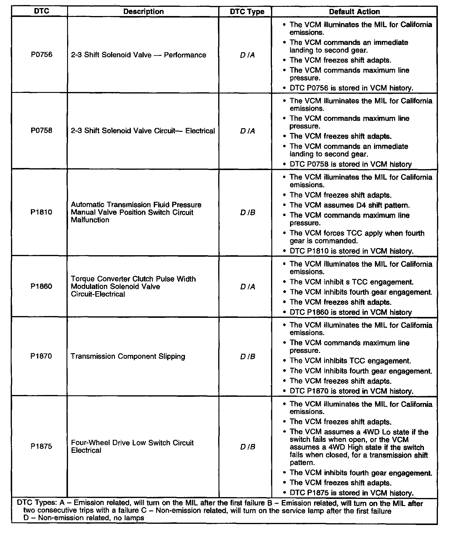 Diagnostic Trouble Code Descriptions