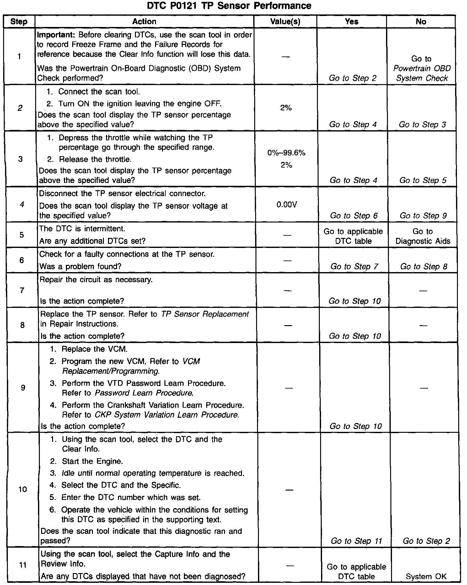 4. With the TP sensor disconnected, the TP sensor voltage should go low if the VCM and the wiring are okay.