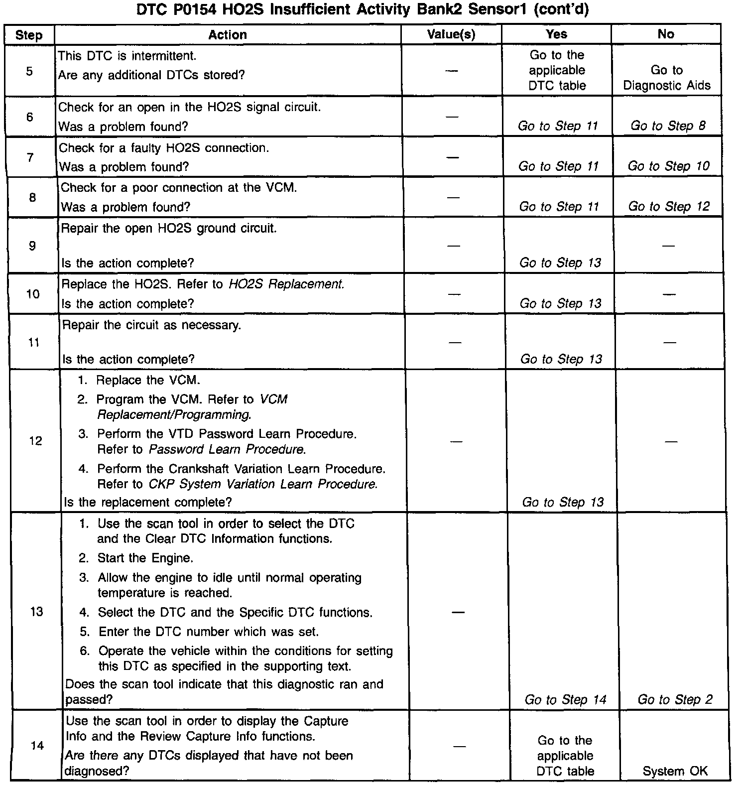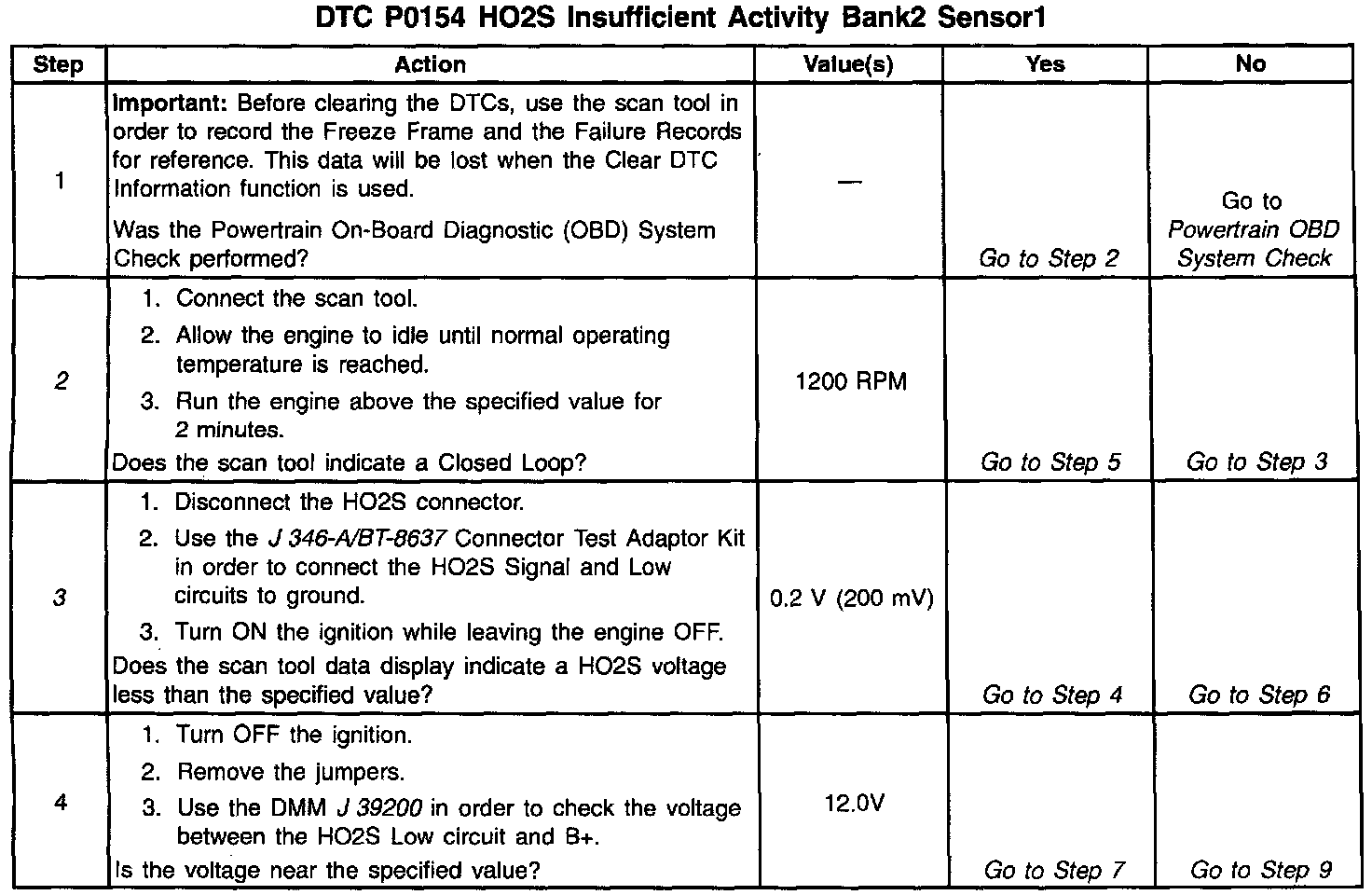 The HO2S heater provides for a faster sensor warm-up which allows the sensor to become active in a shorter period of time and remain active during a long extended idle. The DTC P0154 determines if the HO2S or the HO2S circuit has developed an open.
