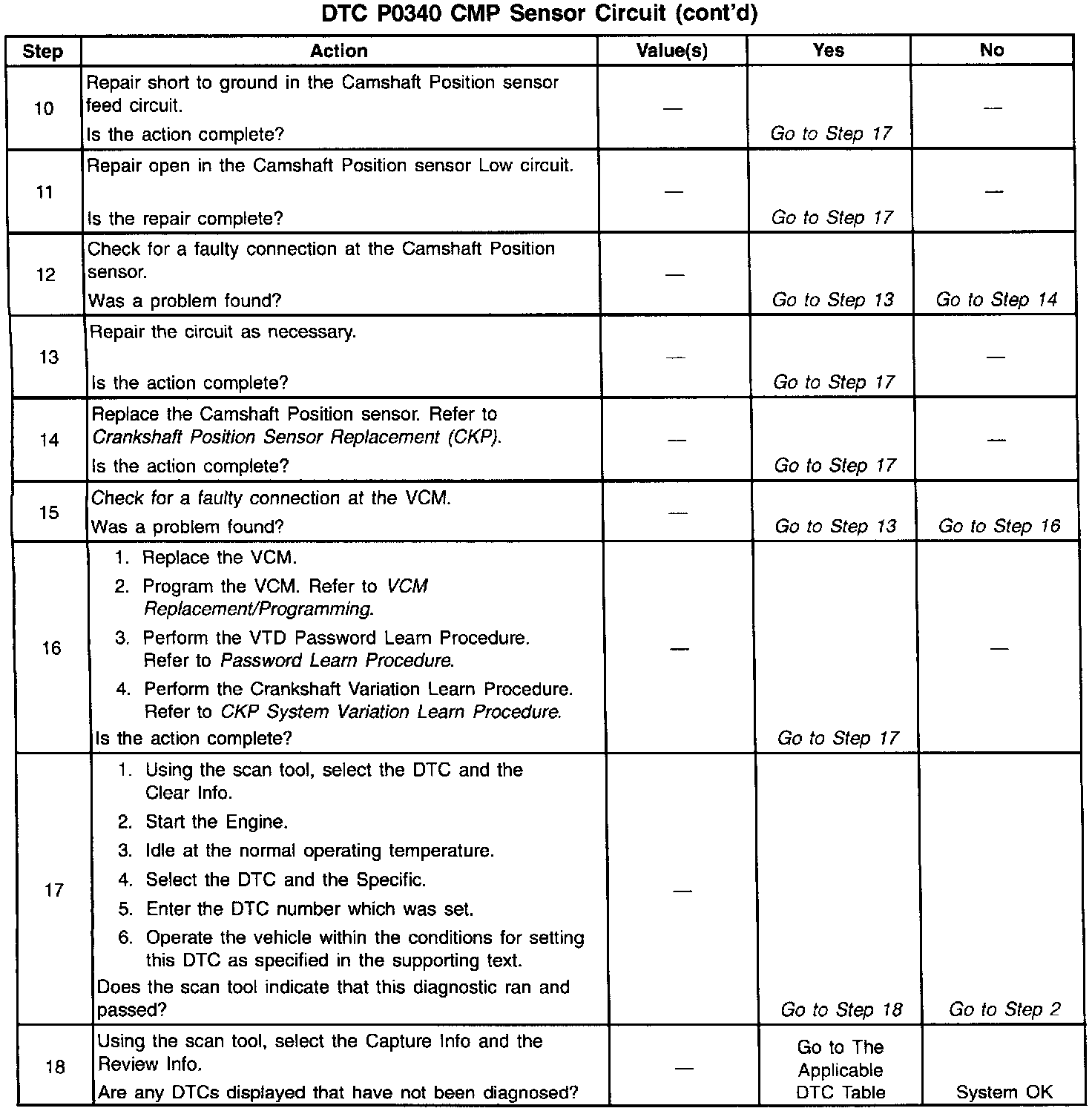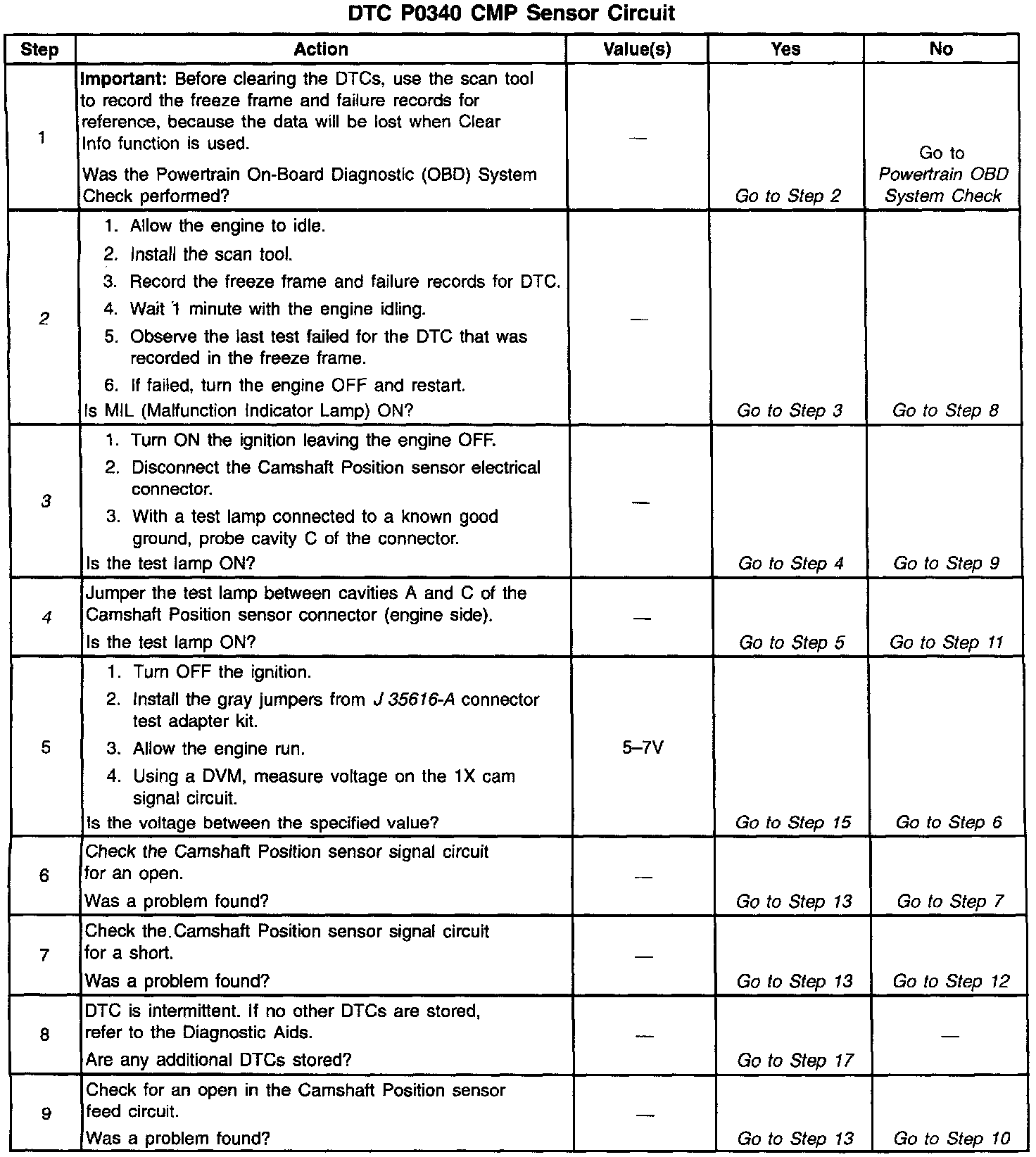 The numbers below refer to the step numbers in the diagnostic table.