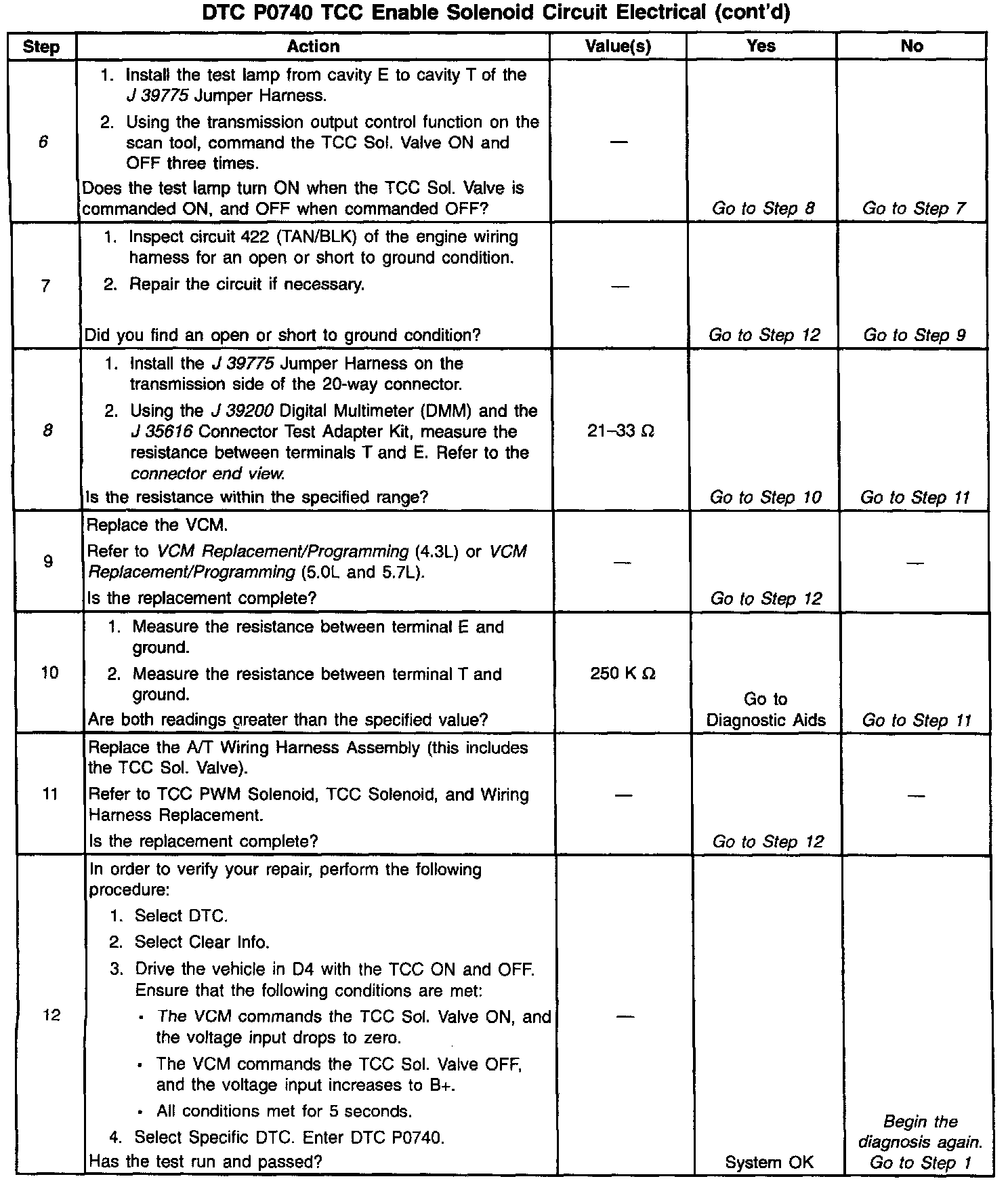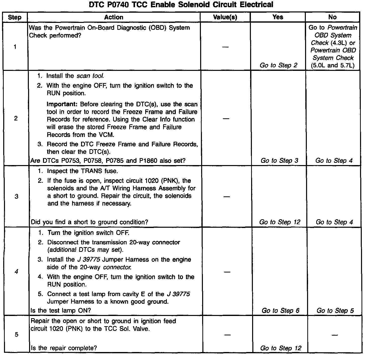 When the VCM detects a continuous open or a short to ground in the TCC Sol. Valve circuit or in the TCC Sol. Valve, then DTC P0740 sets. DTC P0740 is a type A DTC.