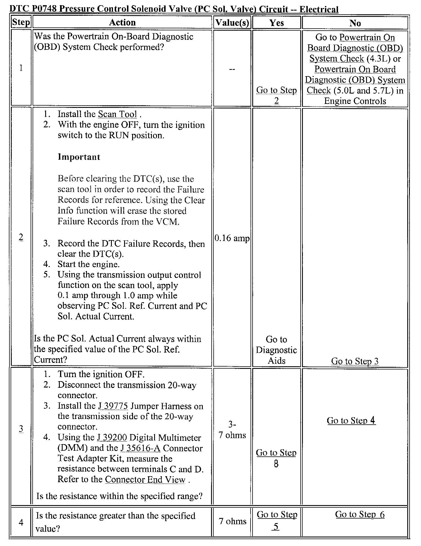 When the VCM detects a continuous open or short to ground in the PC Sol. Valve circuit or the PC Sol. Valve, then DTC P0748 sets. DTC P0748 is a type D DTC.