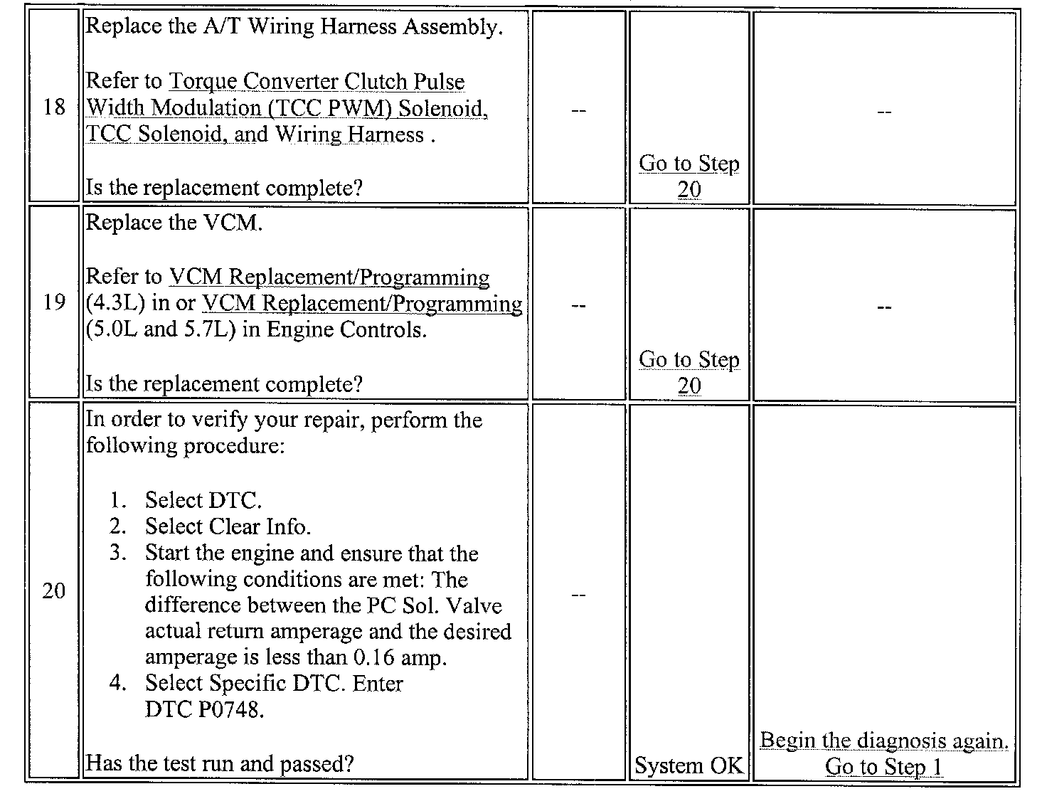 ^ When diagnosing for an intermittent short or open condition, massage the wiring harness while watching the test equipment for a change. DTC P0748 may set under low voltage conditions caused by high electrical system demands.