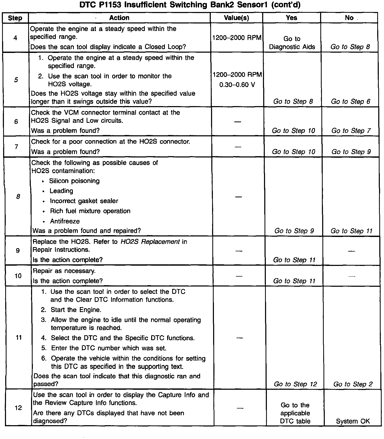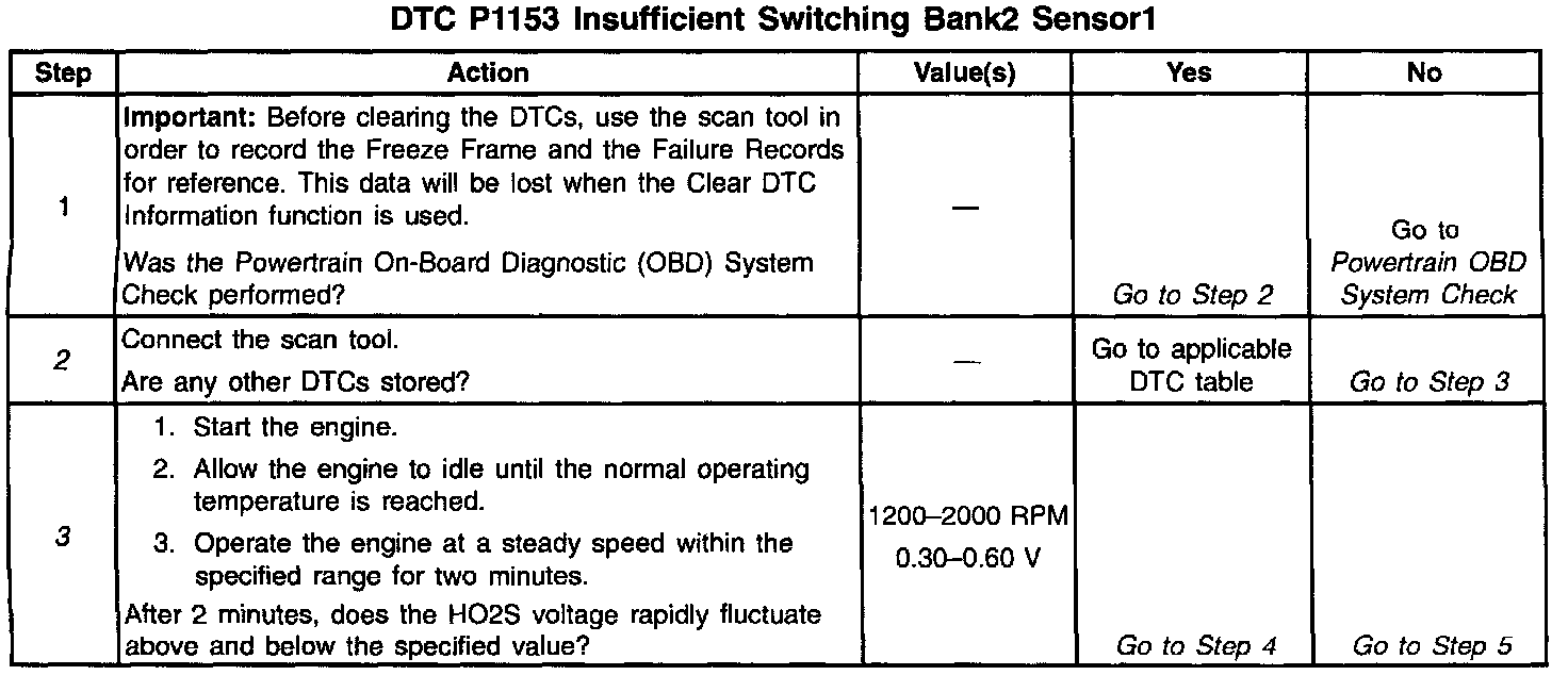 5. This step checks to see if the Oxygen sensor voltage is swinging between rich and lean very slowly or not at all.