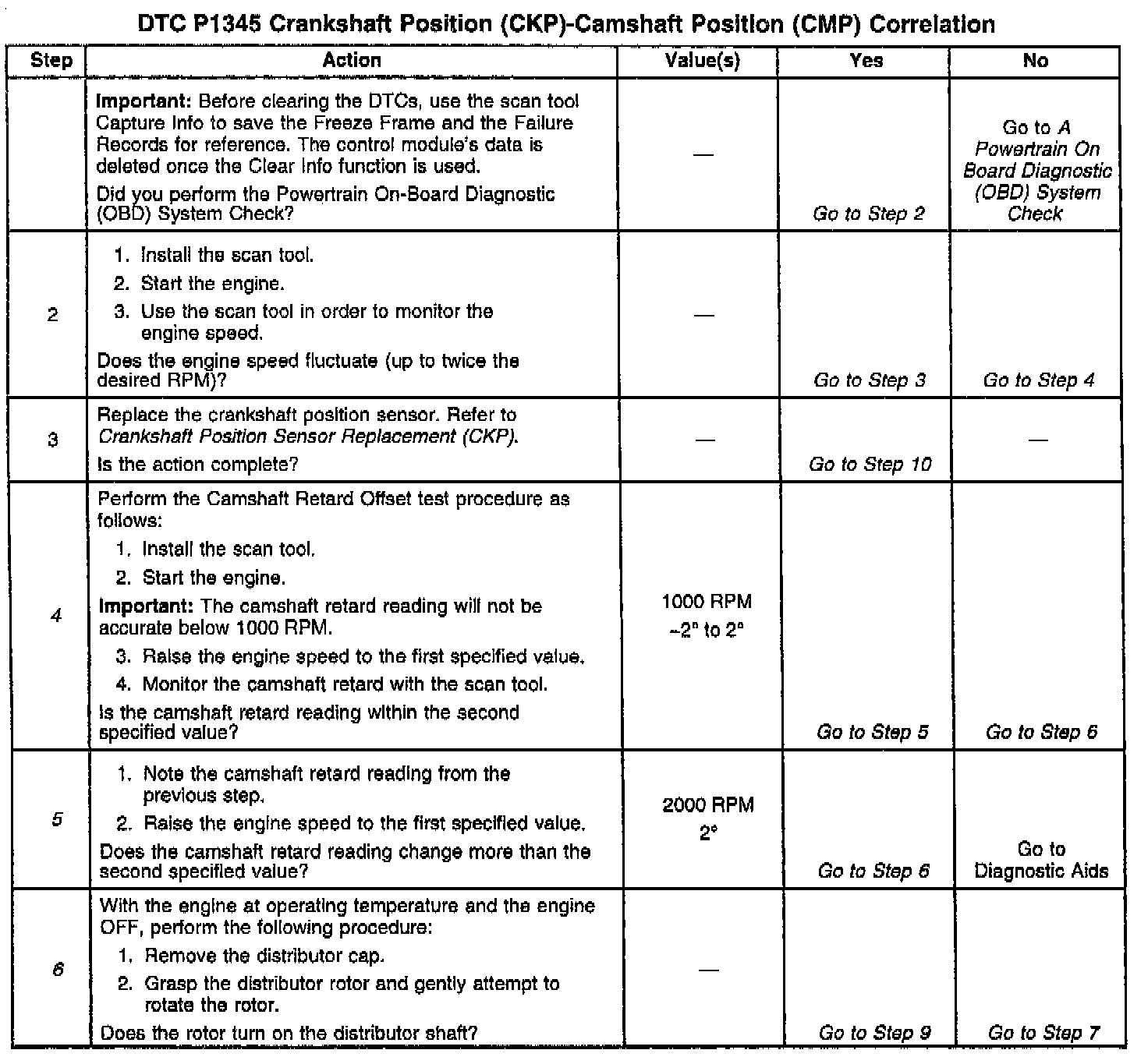 P1345 CKP/CMP Correlation: