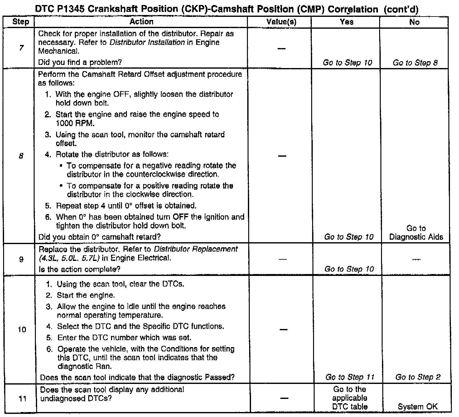This DTC determines if the distributor is installed incorrectly, or if there is a mechanical malfunction in the engine.