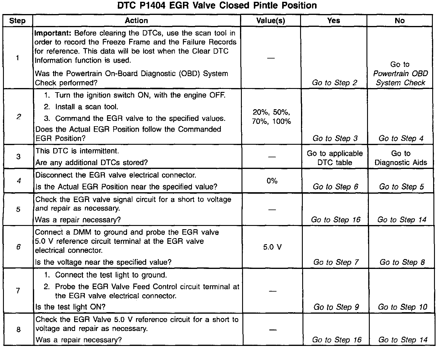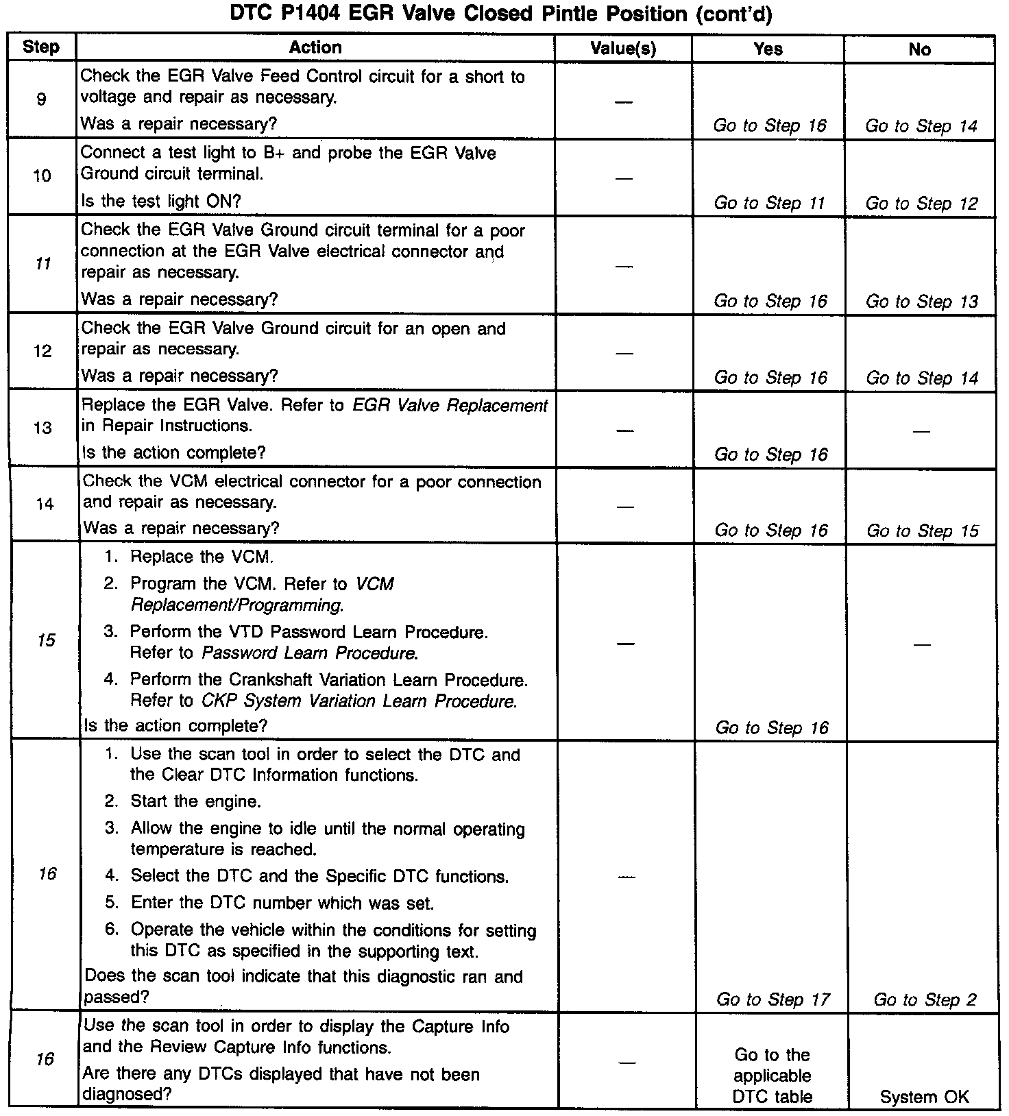 16. Clearing the DTCs is a very important step for this diagnostic. The clearing function allows the EGR valve to relearn a new minimum pintle position as the old position was inaccurate due to the malfunction that caused the DTC. If the VCM sees an EGR command, the new minimum pintle position will not be learned.
