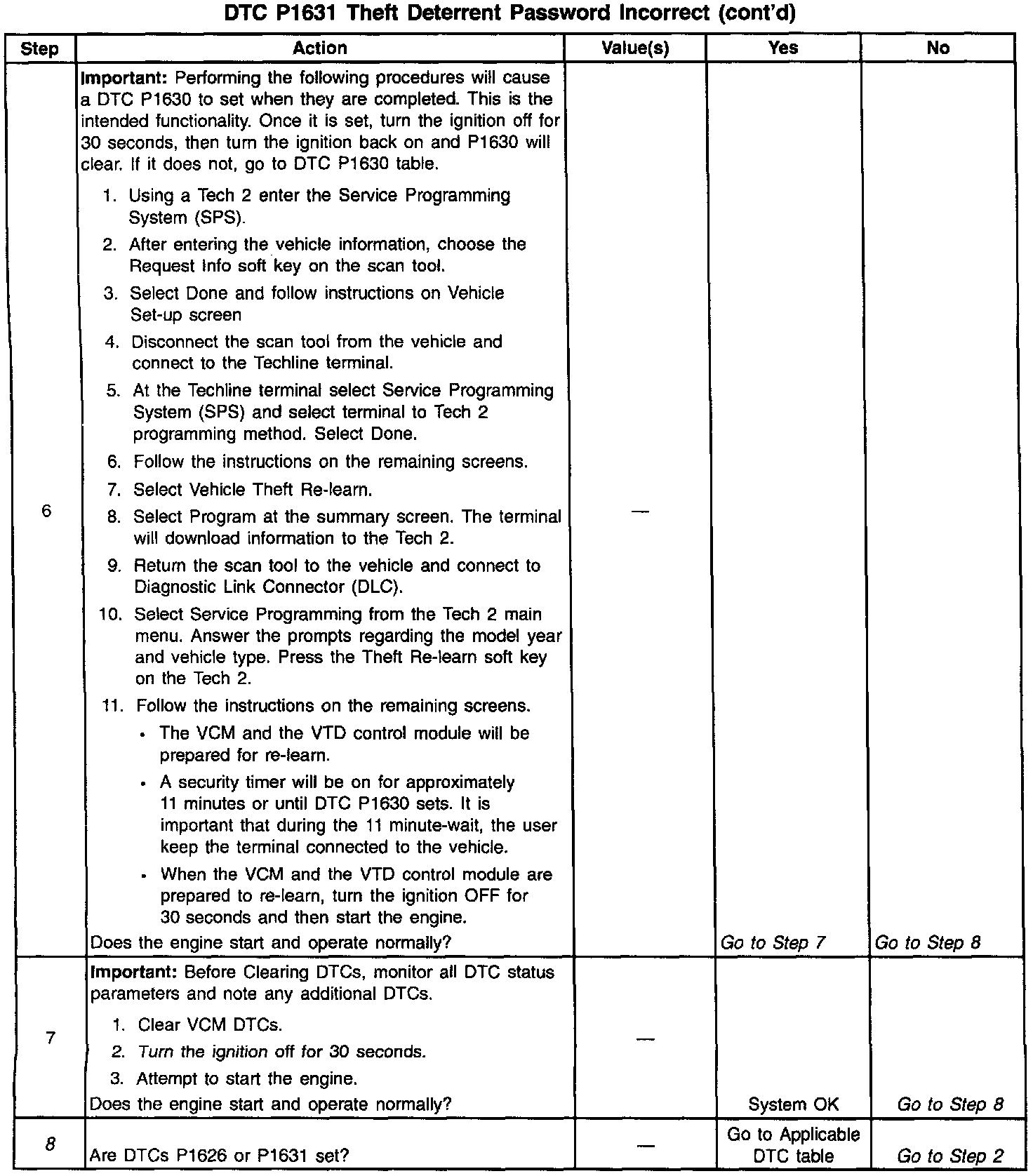 8. If DTC P1631 is set, indicates that the procedure was not followed correctly. The Re-learn procedure will have to be re-performed.