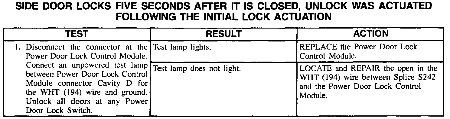 Side Door Locks Five Seconds After It Is Closed, Unlock Was Actuated Following The Initial Lock Actuation: