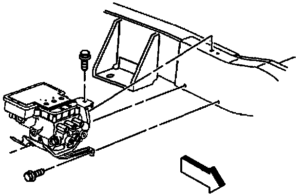 8. Remove the three bolts (1) that fasten the EHCU bracket to the frame.