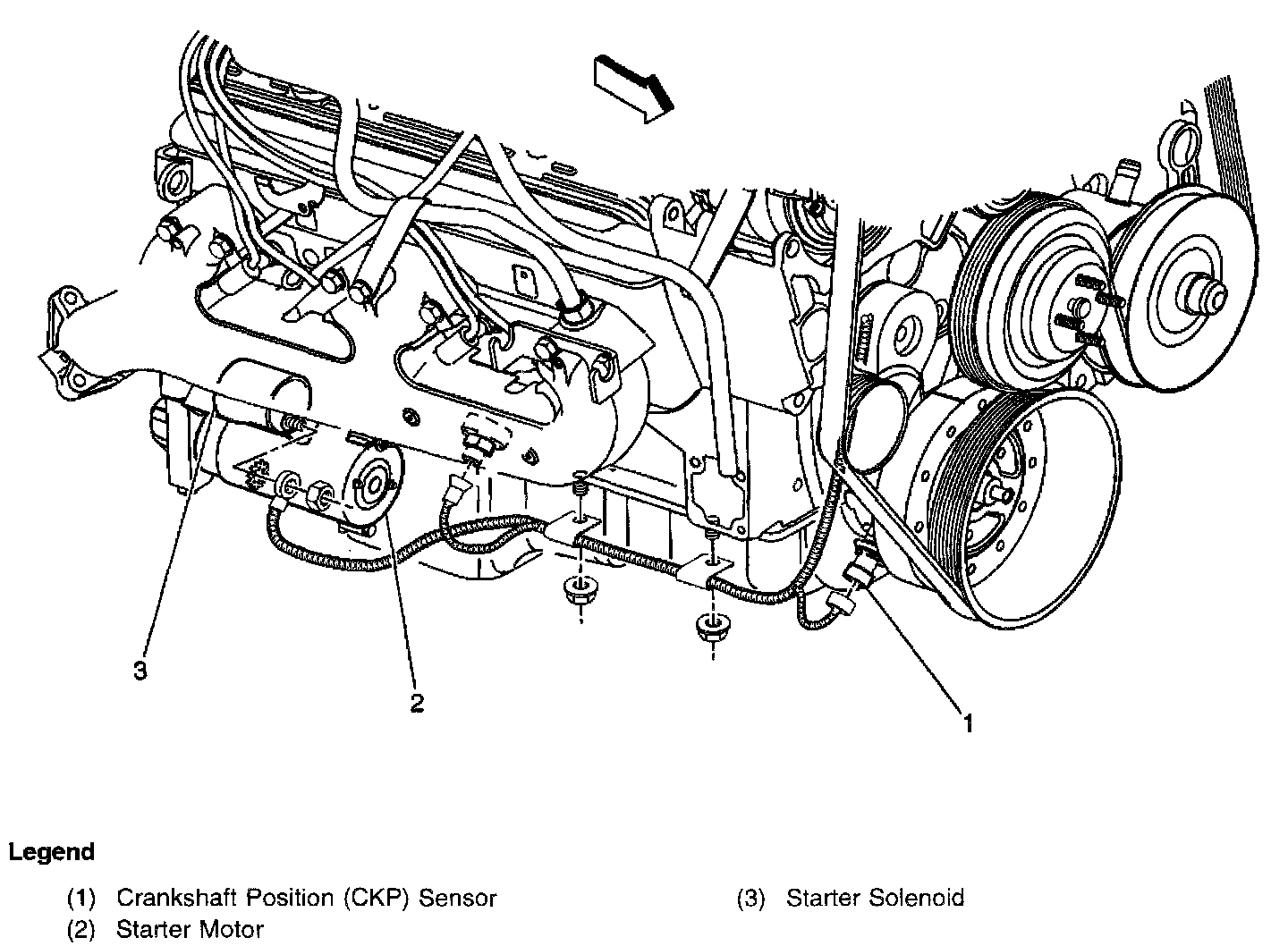 RH lower rear of engine, part of starter