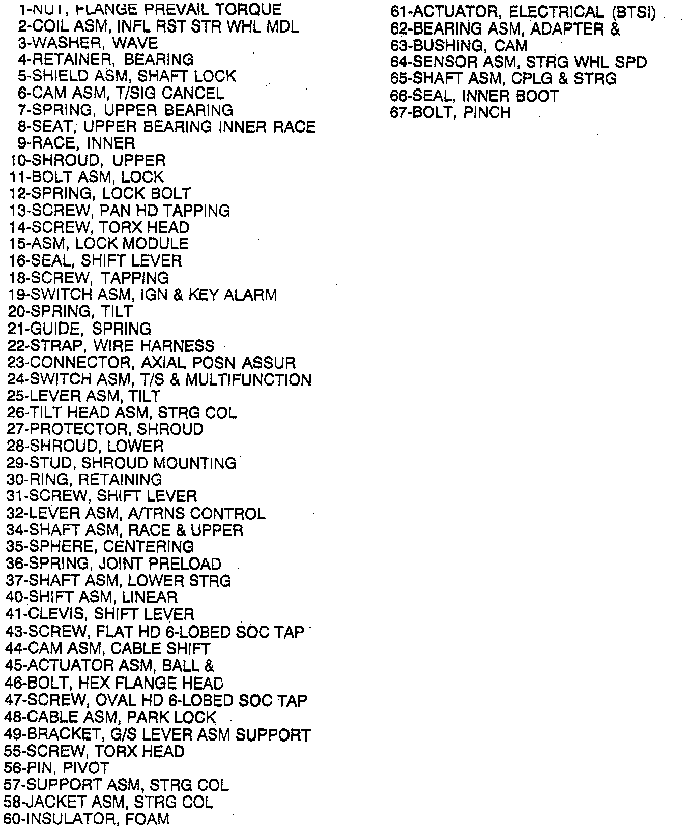 Tilt Steering Column - Legend - Part 2 Of 2: