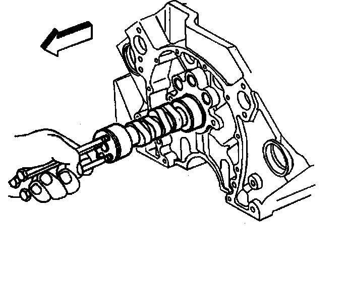 NOTICE: All camshaft journals are the same diameter, so care must be used in removing or installing the camshaft to avoid damage to the camshaft bearings.