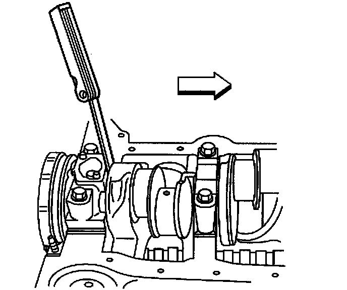 9. Thrust the crankshaft rearward in order to set and align the crankshaft thrust bearings and the crankshaft bearing caps.