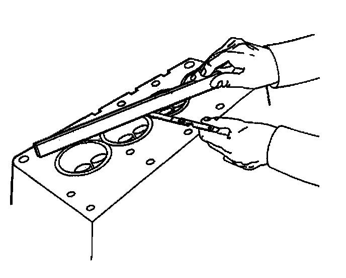 6. Measure the cylinder head for warpage with a straight edge and feeler gauge.