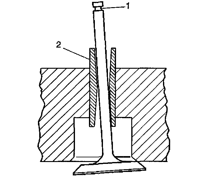 9. Valve stems (1) with excessive guide (2) clearance must be repaired or replaced.