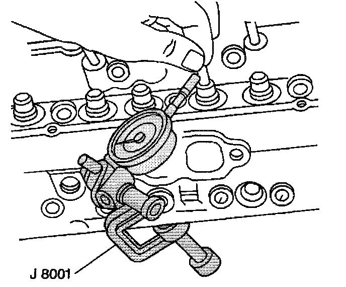 10.1. Clamp the J 8001 on the exhaust port side of the cylinder head.