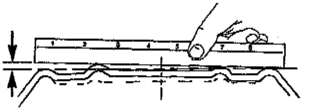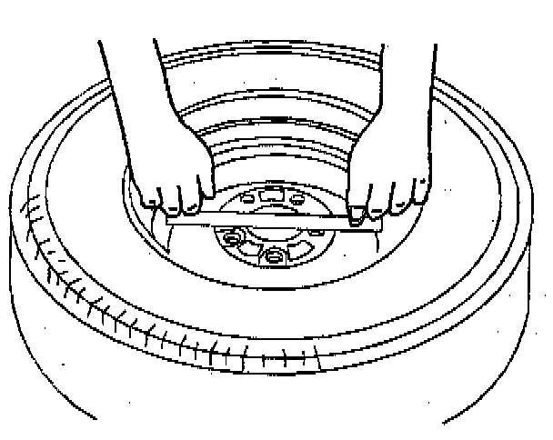 It is necessary to replace any wheels which are bent, dented, or which have excessive lateral or radial runout. Also, wheels with runout greater than specified may cause objectionable vibrations.1. Use a straight edge 203-229 mm (8-9 in) long. Place the straight edge on the wheel inboard mounting surface. Try to rock the straight edge up and down within the mounting surface.