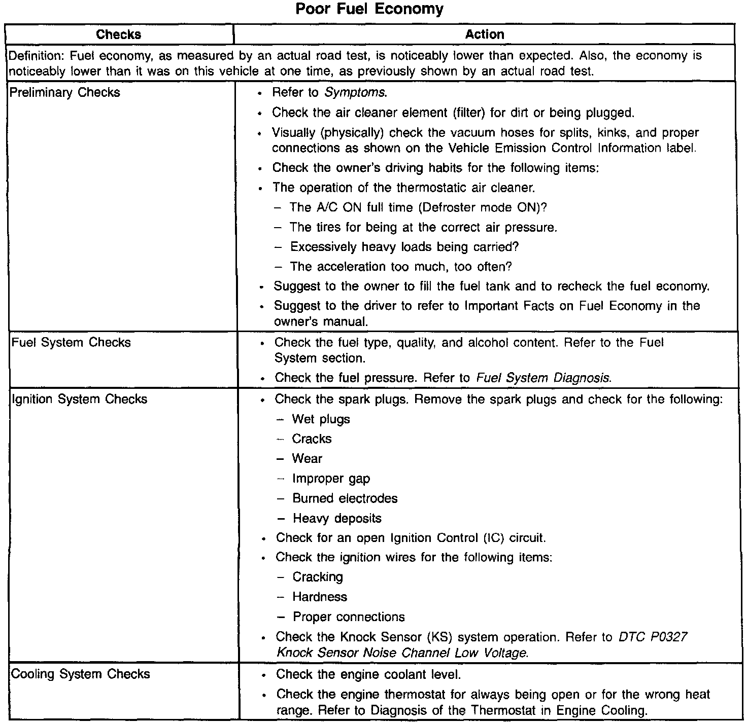 Poor Fuel Economy
