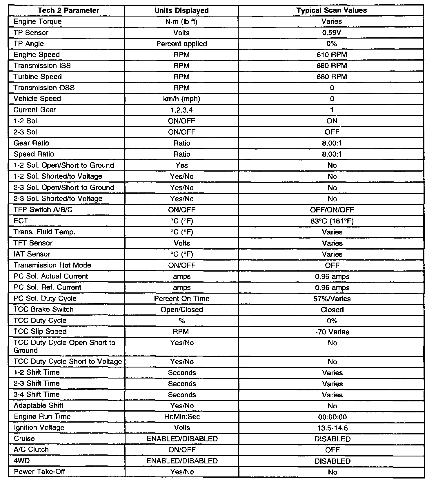 Only the parameters listed below are used in this manual for diagnosing. If a scan tool displays other parameters, the values are not recommended by General Motors for use in diagnosis.