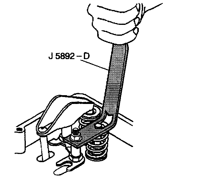6. Use the J 5892-D in order to compress the valve spring.