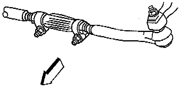 2. With the steering wheel in the straight and the locked position, loosen the inner to outer tie rod sleeves.