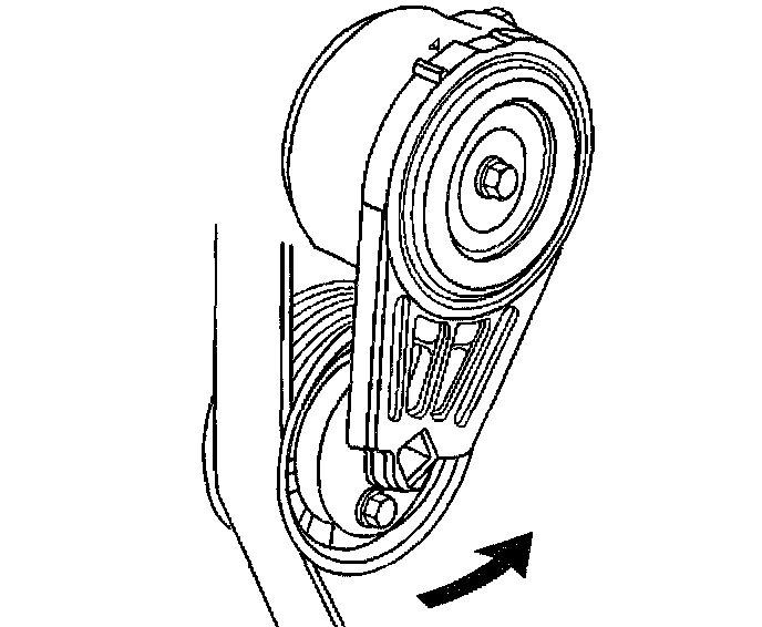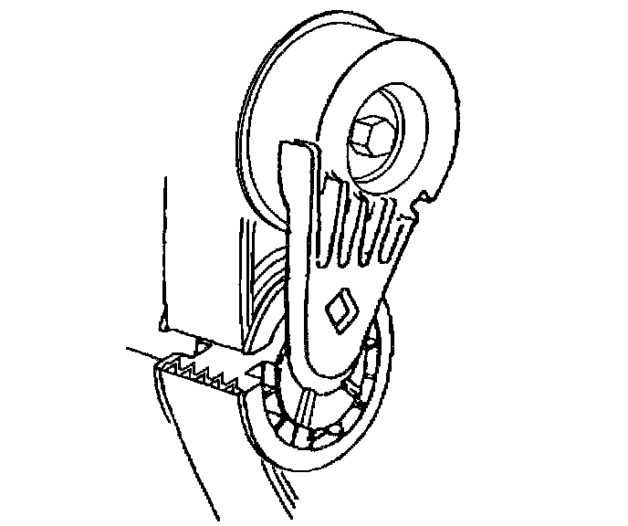 4. Install a 3/8 inch drive wrench on the drive belt tensioner arm and rotate the arm counterclockwise.
