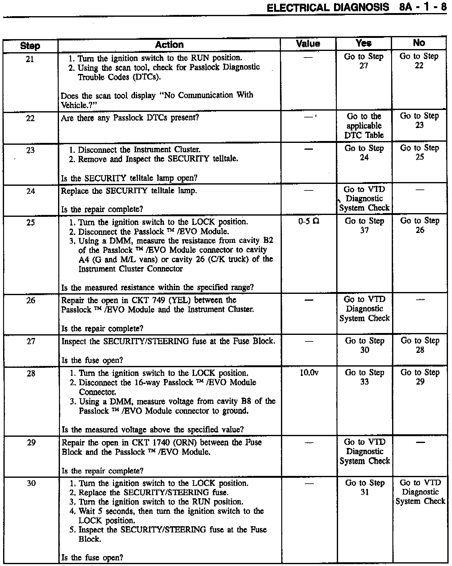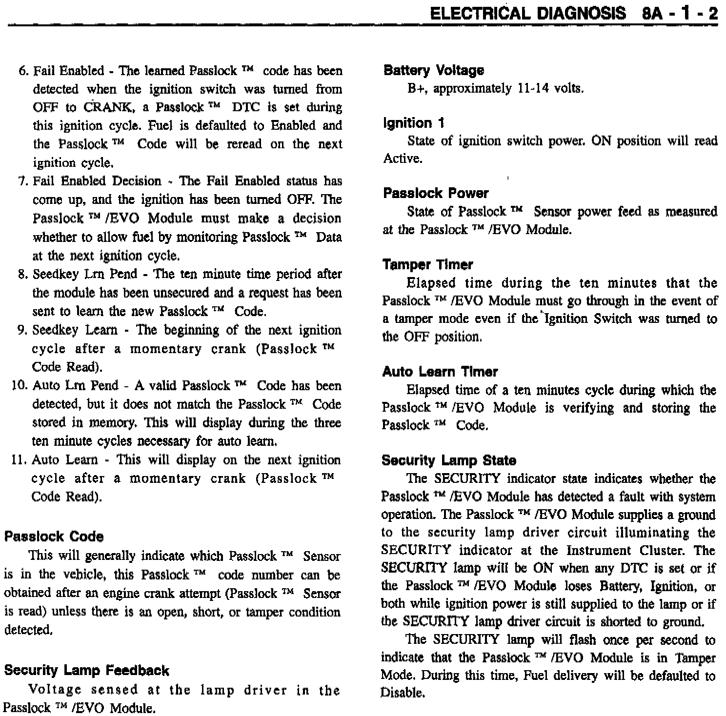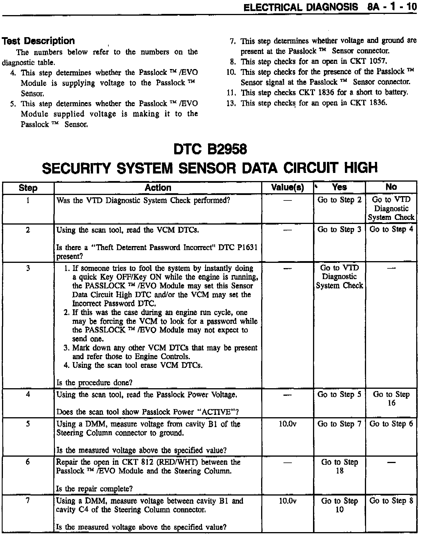 This bulletin revises the Theft Deterrent System (Passlock) system check and DTC B2958 Tables. Also, a new Table I has been introduced. This bulletin covers all of the 1998 C/K, M/L, and G Trucks.