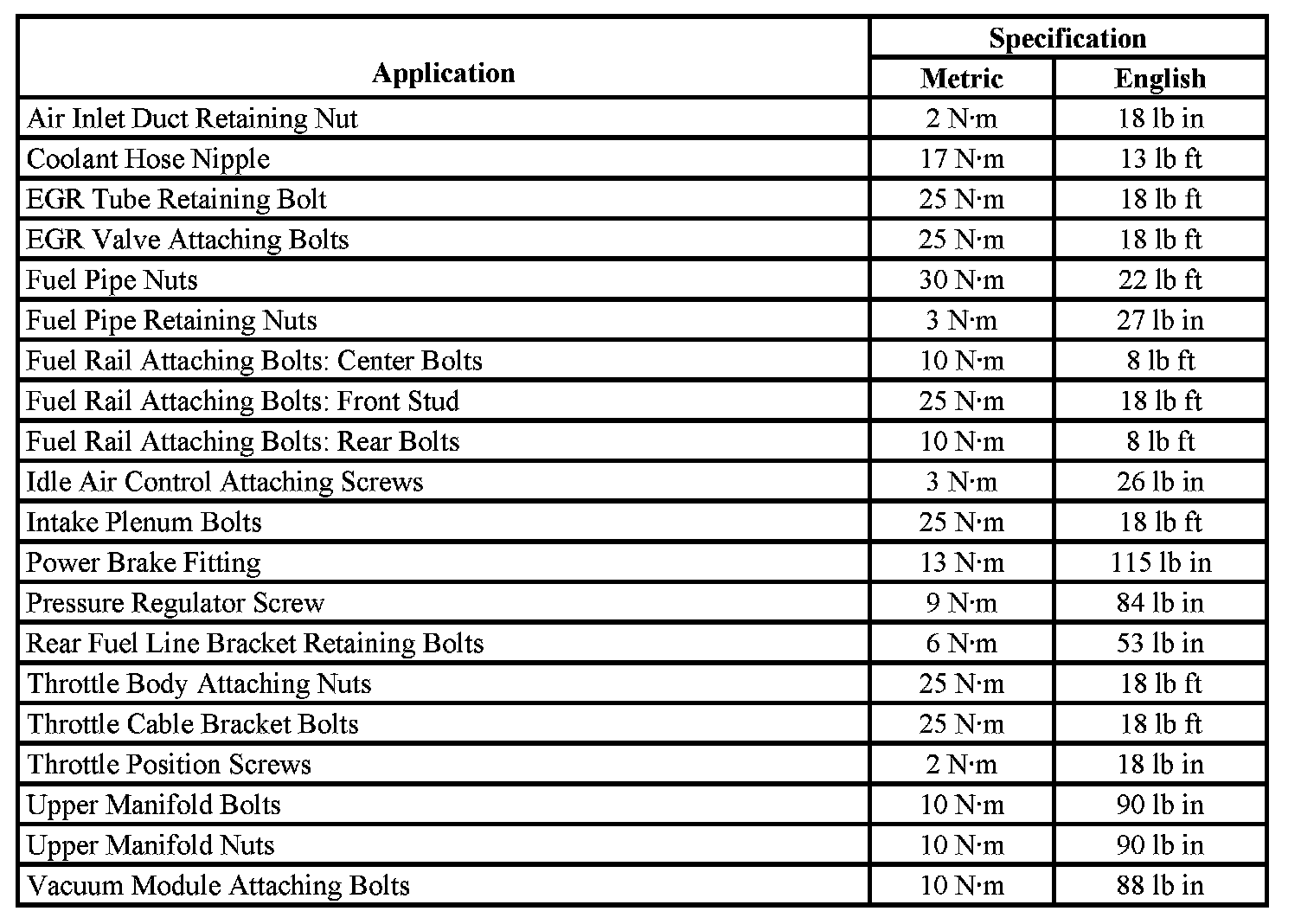 Fastener Tightening Specifications - Engine Controls