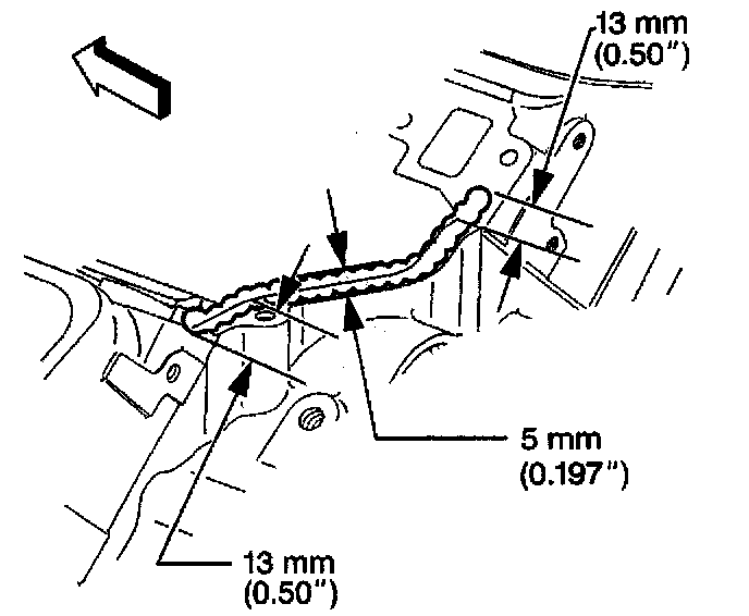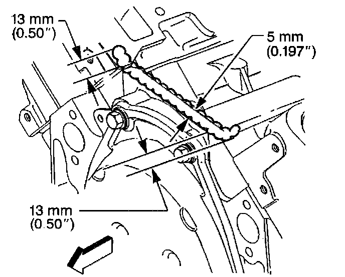 4. Extend the adhesive bead 13 mm (0.50 inch) onto the each lower intake manifold gasket.